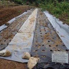 マルチの約800個の穴にひとつまみずつ入れていきます
