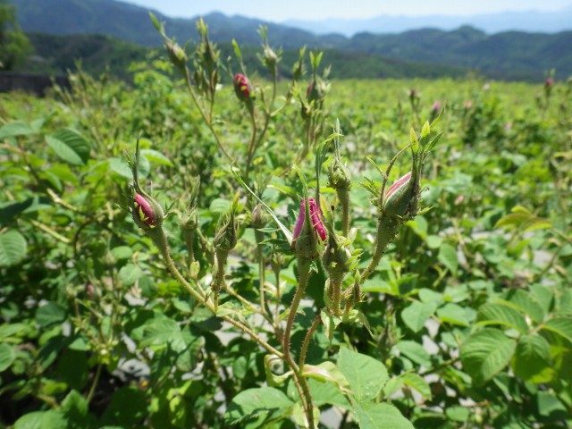 農場のローズは蕾のピンク色が遠くからも分かるようになりました