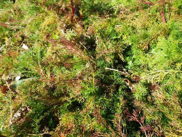 カモマイル・ジャーマンの葉が赤く変色して寒さに耐えています