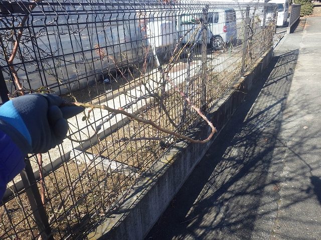 長く伸びた新枝は大切にしてフェンスに這わせます