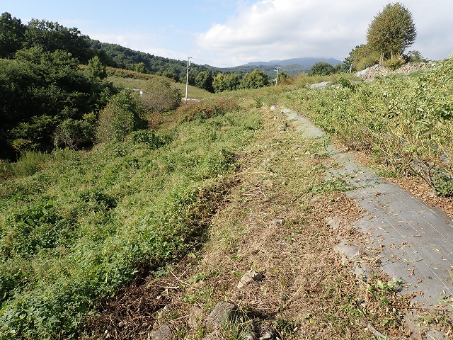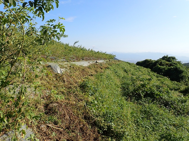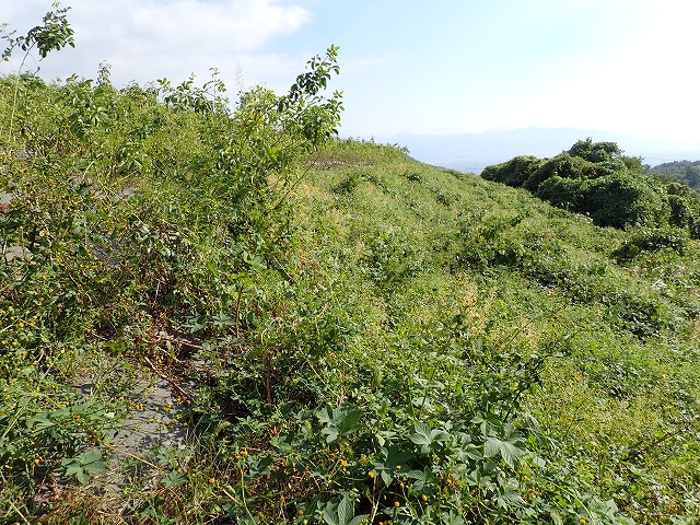 崖下から伸びて来たつる草がローズ畑に押し寄せています