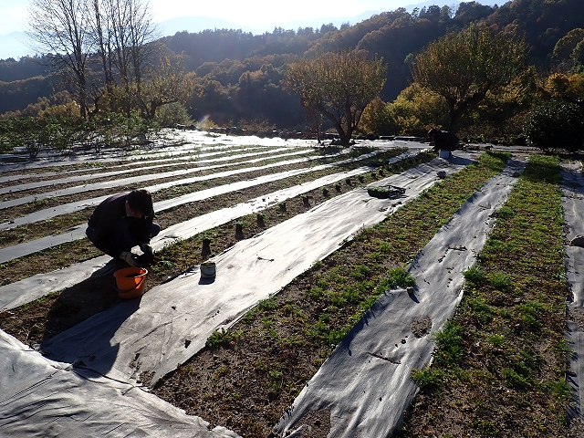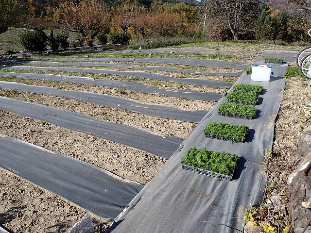 こちらの畑にはカモマイル・ジャーマンの苗を定植します