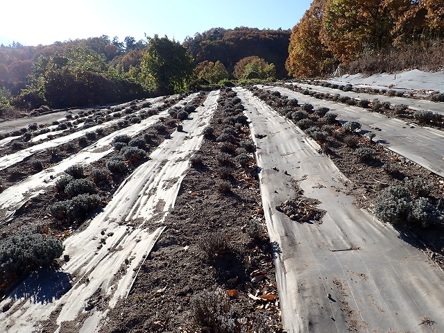 折角綺麗にしたのに落ち葉がラベンダーを埋めてしまいます