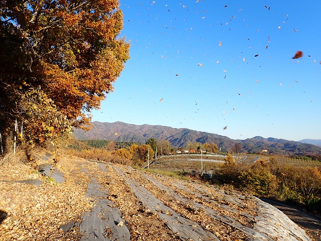 風が吹くと雑木林から枯れ葉が舞い落ちて来ます