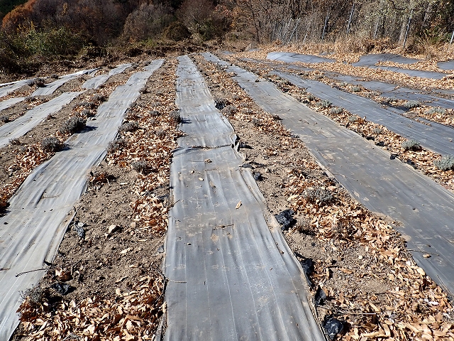 ラベンダー畑にも沢山の落ち葉が舞って来ます