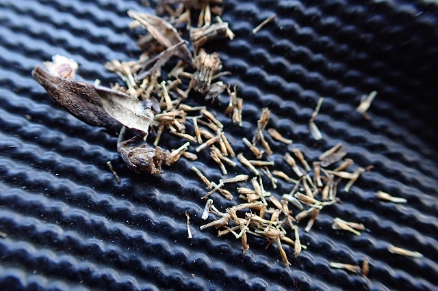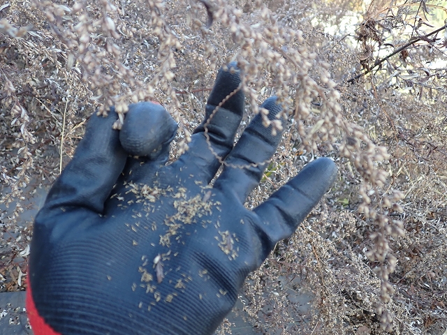 枯れた花穂の先を軽く握ると沢山の種がこぼれ落ちて来ます
