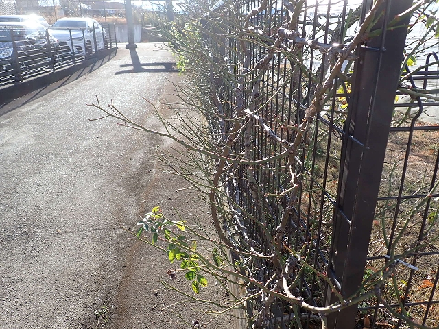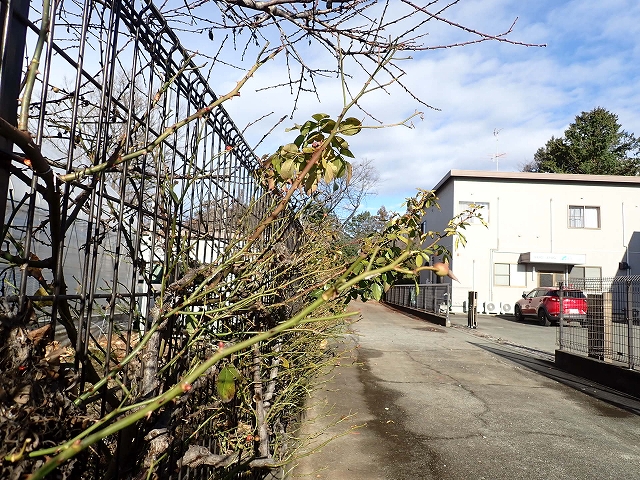 つるバラの枝が伸びています