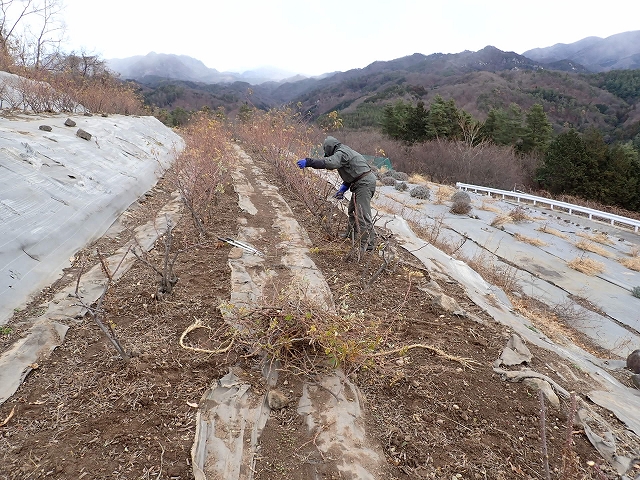 厳寒の中で黙々と剪定作業が進んでいます