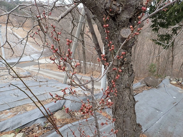 こんな寒さの中でも梅の蕾が膨らみ始めているのを見つけました