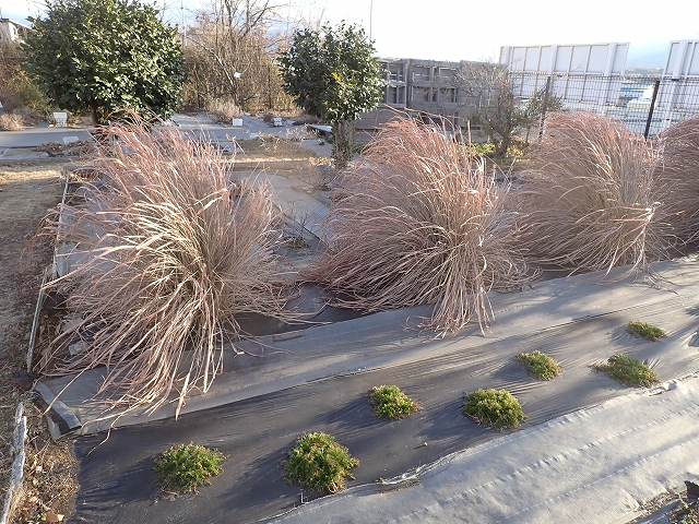 防寒目的で葉を残したまま冬を越させているレモングラス