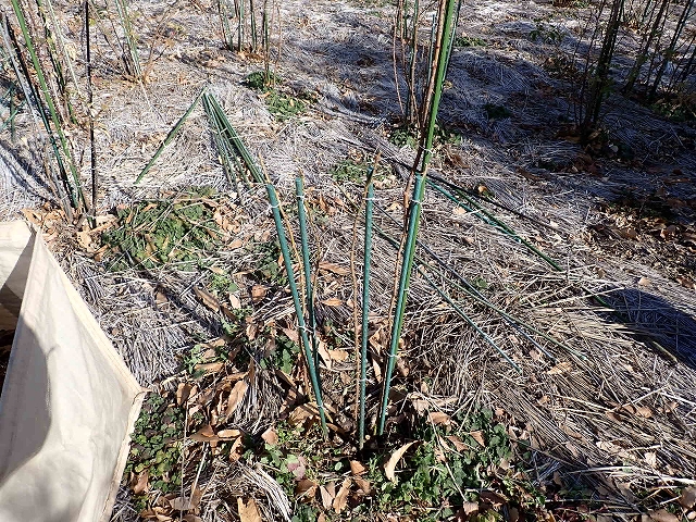 剪定の終わった枝を支柱に誘引して完了