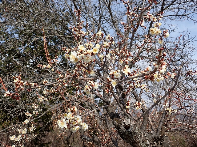蕾が膨らんでから先週は雪が降り、ようやく梅の花が開花しました