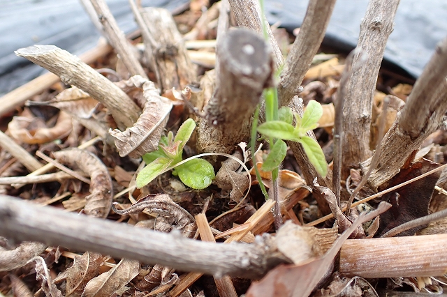レモンバーベナの株元に新芽を発見!