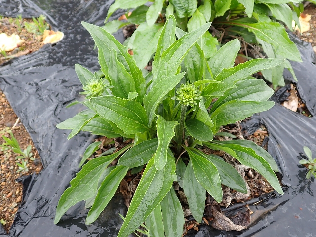 エキナセアから花柱が立ち上がっています