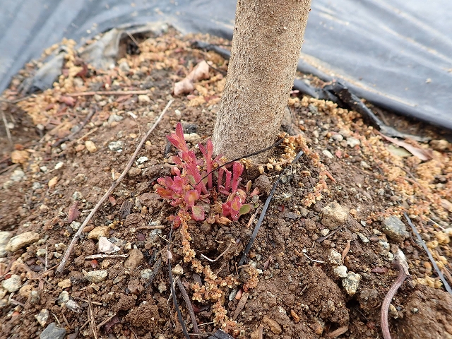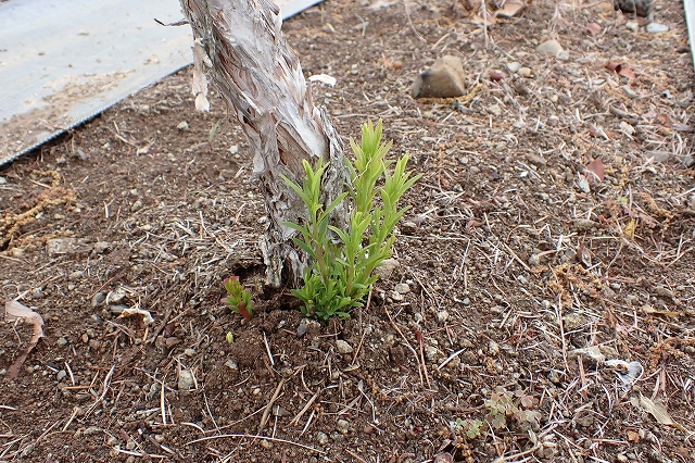ティートゥリーの株元から新芽が出て来ました