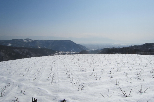 農場のローズ畑にはまだ雪がいっぱい